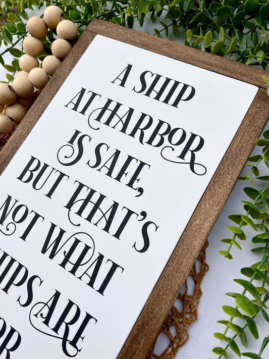 A Ship At Harbor Is Safe, But That's Not What Ships Are For Painted Wood Sign