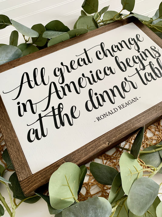All Great Change In America Begins At The Dinner Table Framed Wood Sign