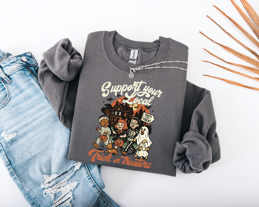 Support Local Trick Or Treaters Retro Halloween Crewneck Sweatshirt