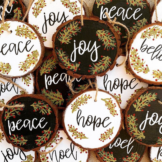Hand painted Wood Slice Ornaments