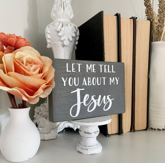 Let Me Tell You About My Jesus Mini Wood Sign