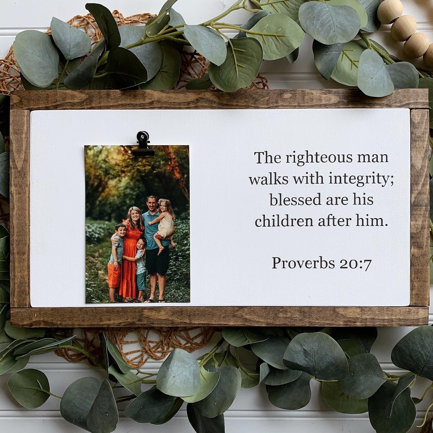 A Righteous Man Walks With Integrity Photo Clip Framed Wood Sign