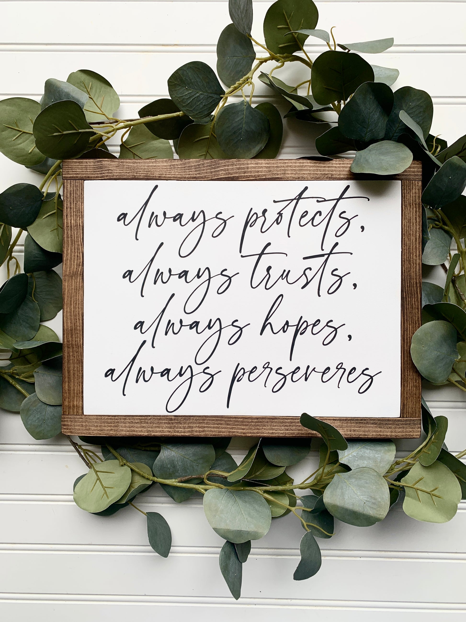 Always Protects Always Trusts Always Hopes Always Perseveres 1 Corinthians 13 Framed Wood Sign