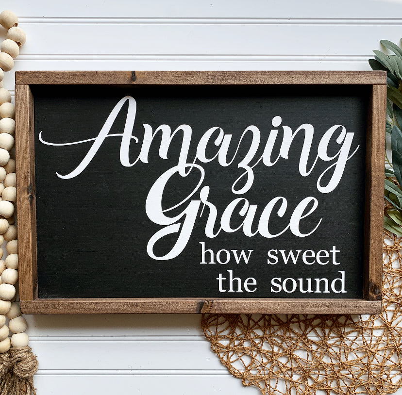 Amazing Grace How Sweet The Sound. These beautiful hymn lyrics make the perfect piece for your home decor!