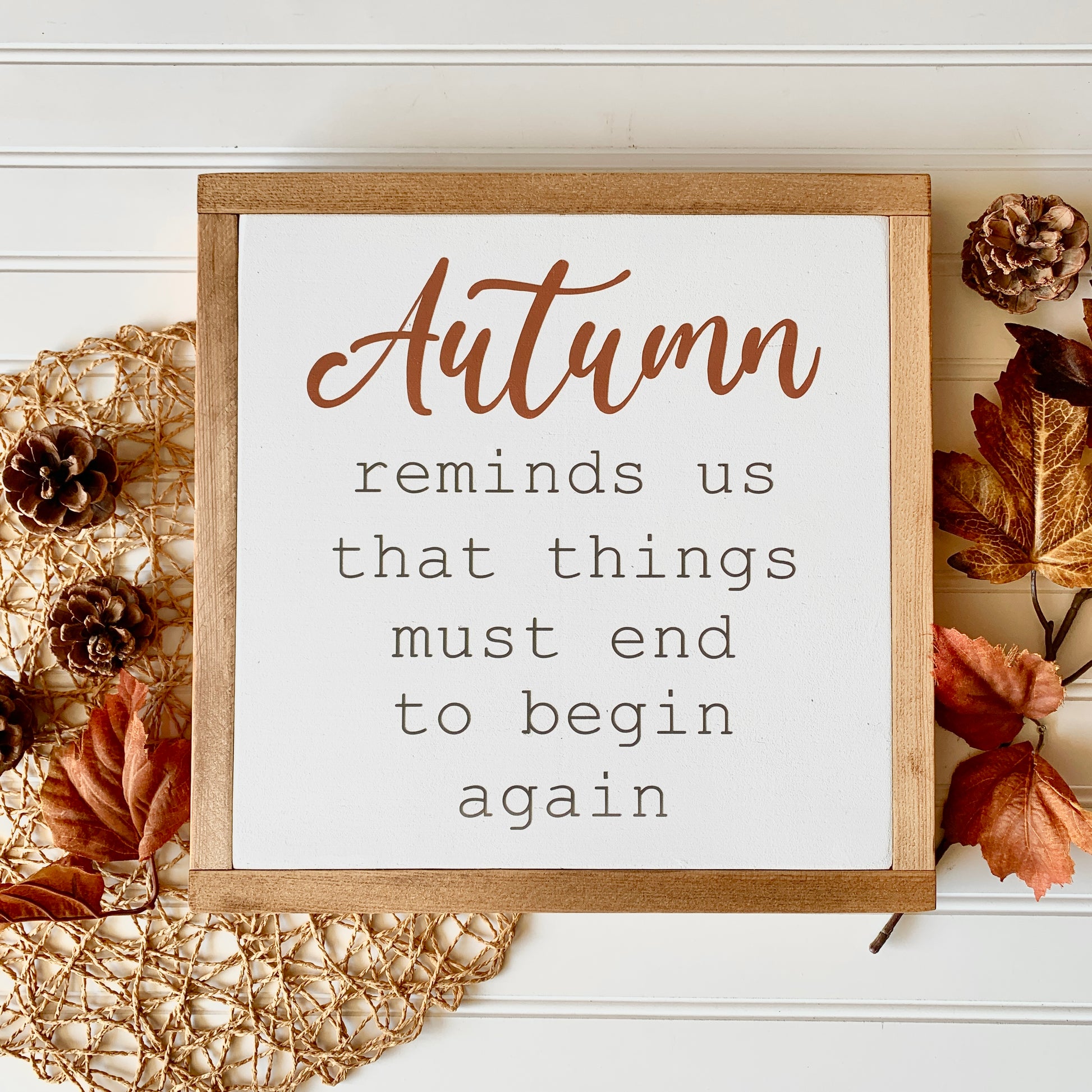 Autumn Reminds Us That Things Must End To Begin Again Framed Wood Sign