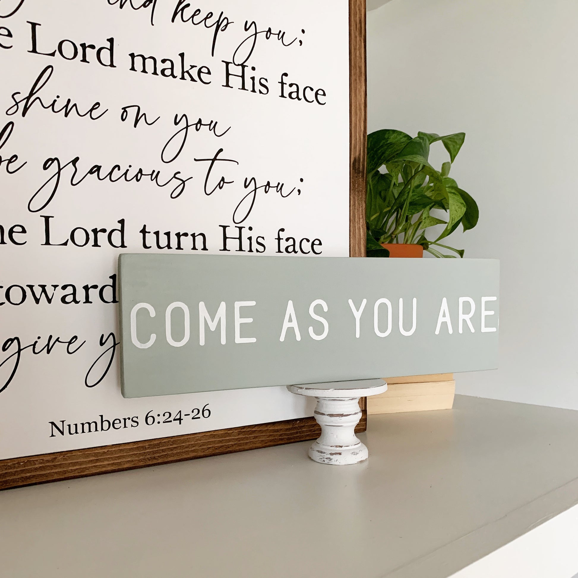 These are mini signs - perfect for a shelf or small counter or nightstand space. They do not come with hanging hardware, but can easily hung with a small command strip if desired.