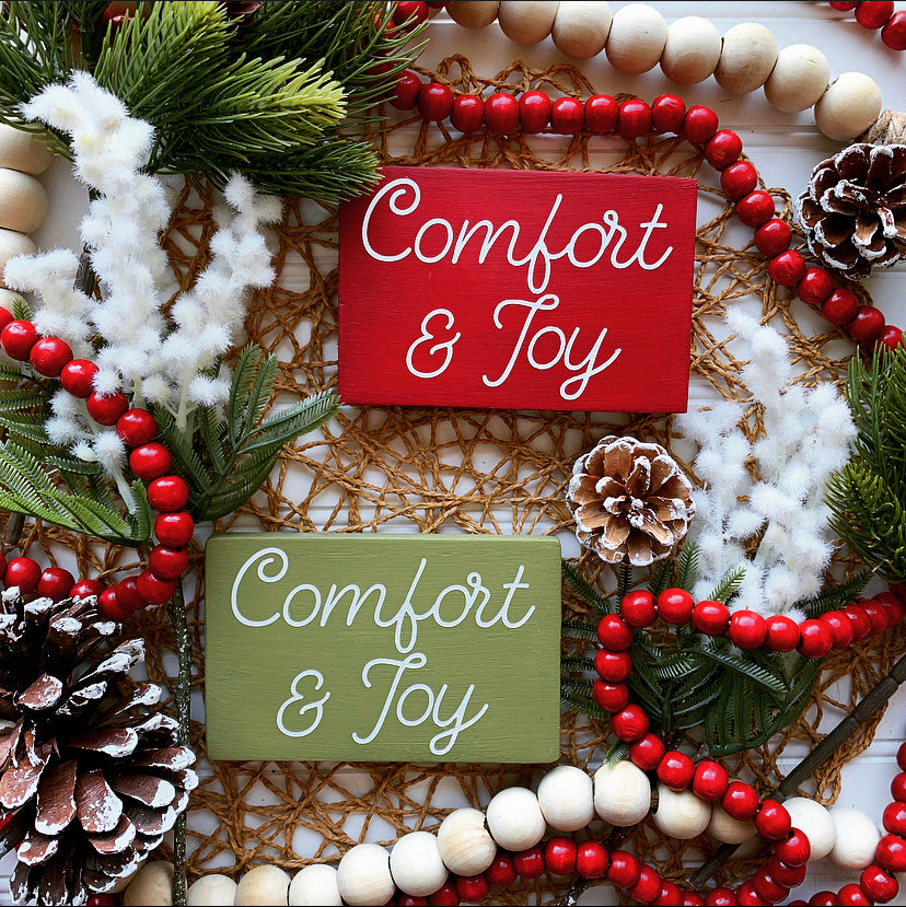 3.5"x5.5" - These are mini signs - perfect for a shelf or small counter or nightstand space. They do not come with hanging hardware, but can easily hung with a small command strip if desired.