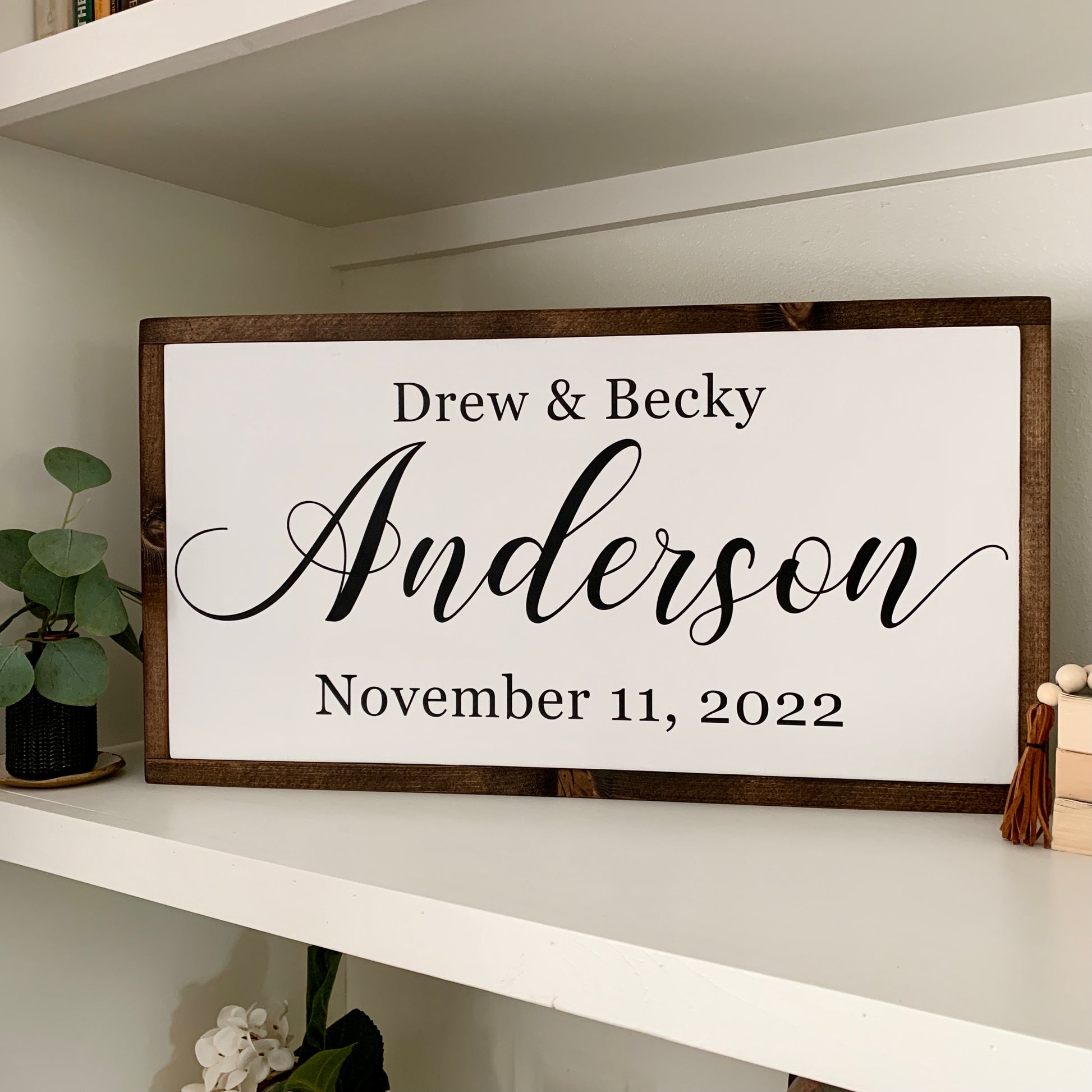Personalized First and Last Name With Date Framed Wooden Farmhouse Sign