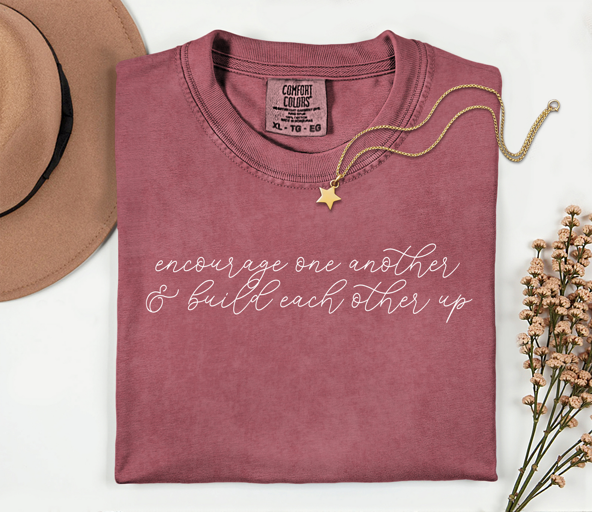 Wrap yourself in faith and encouragement with this super soft Comfort Colors tee, featuring the uplifting reminder : "Encourage one another & build each other up." Perfect for women of faith, church groups, or anyone who loves to wear inspiration close to the heart.