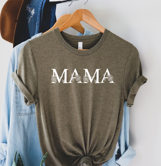 Your perfect MAMA tee shirt with floral detail! A staple for every closet!