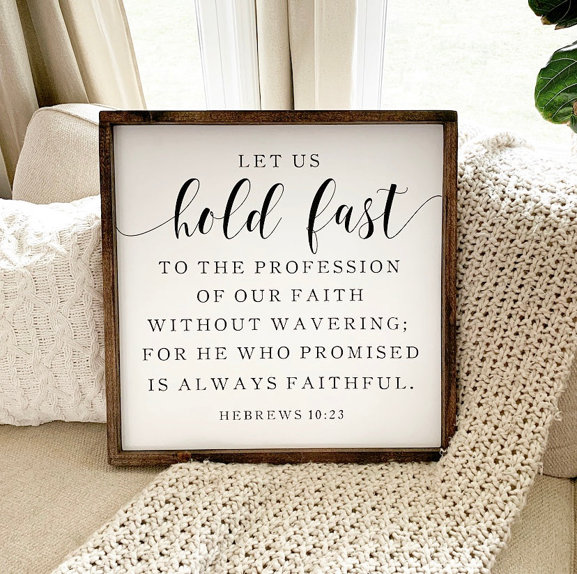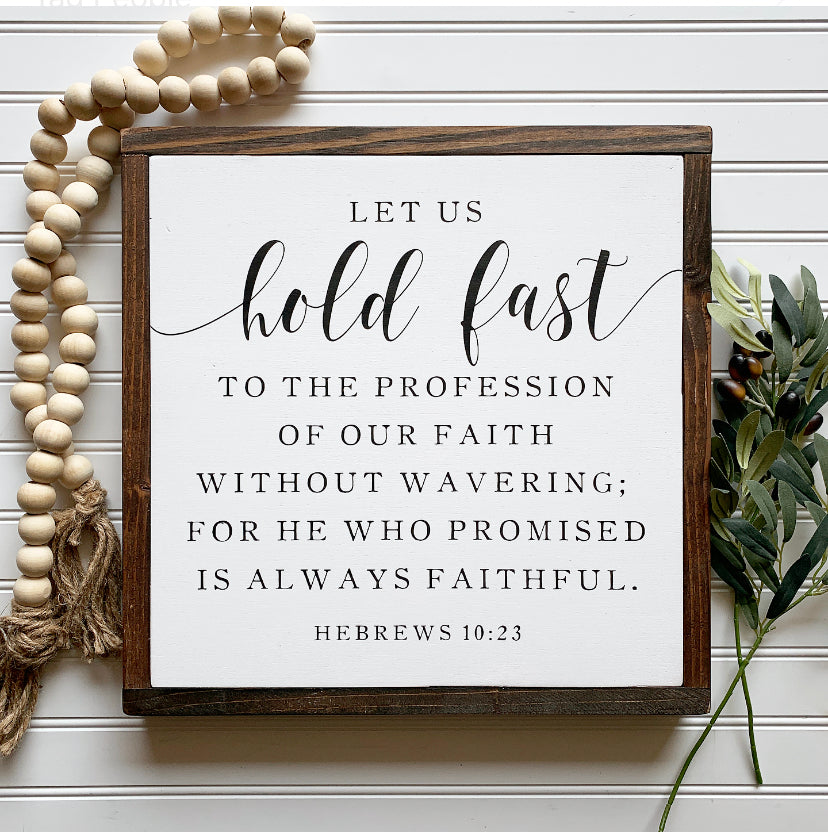 Let Us Hold Fast, Hebrews 10:23 Framed Wood Sign