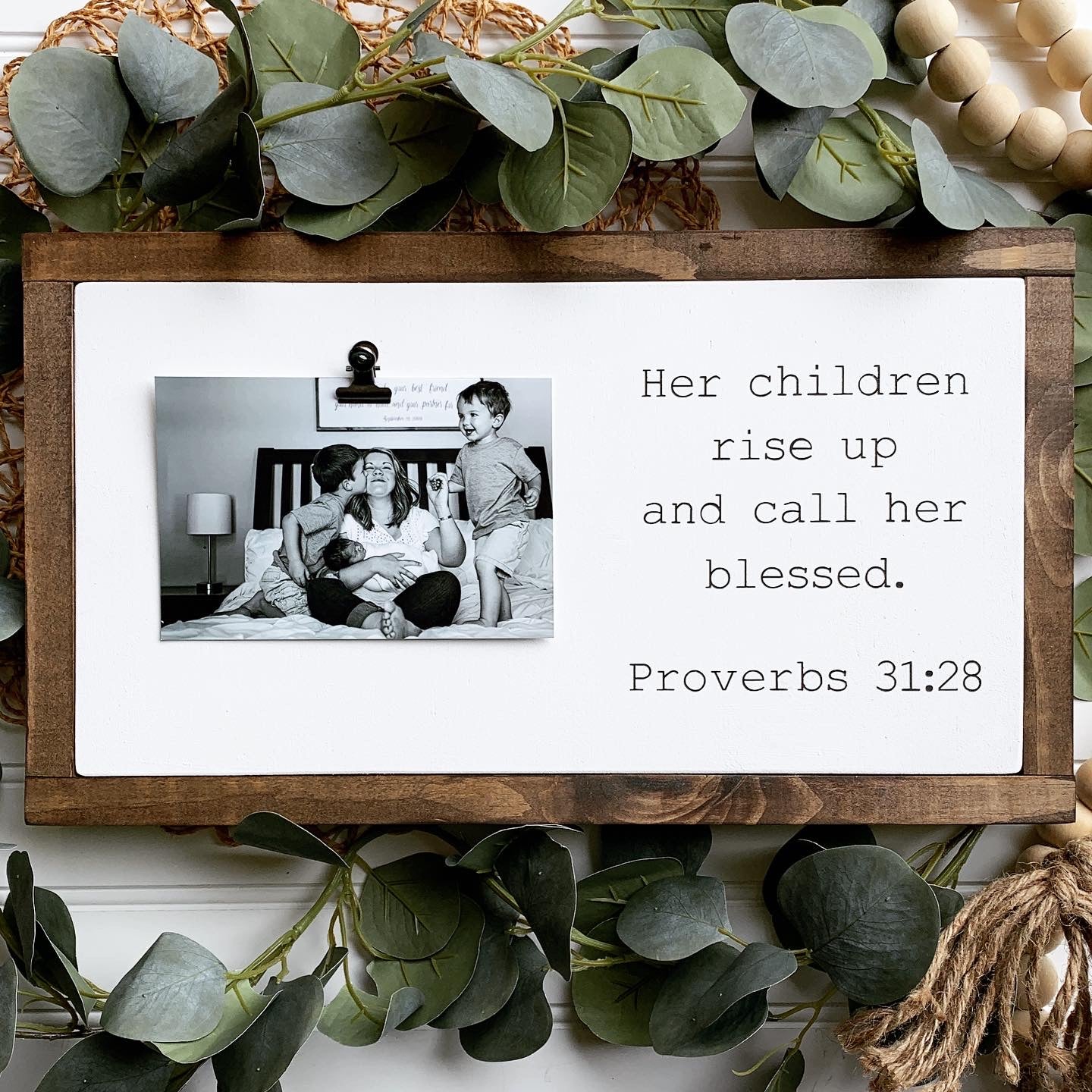 Her Children Rise Up and Call Her Blessed Photo Clip Framed Wood Sign