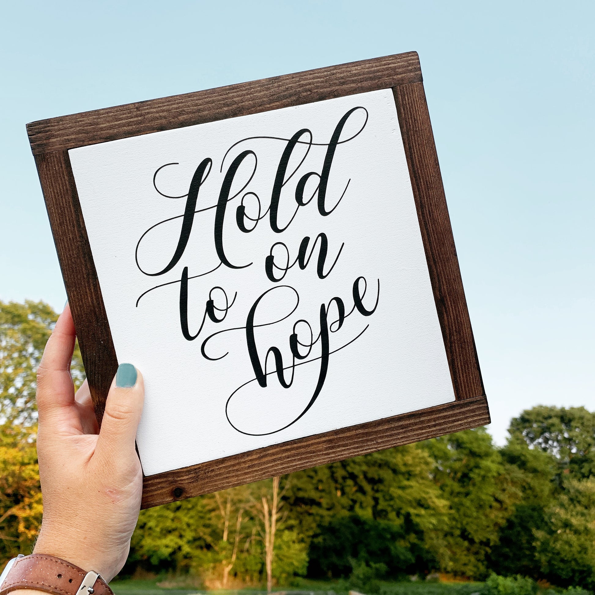 Hold On To Hope Framed Wood Sign