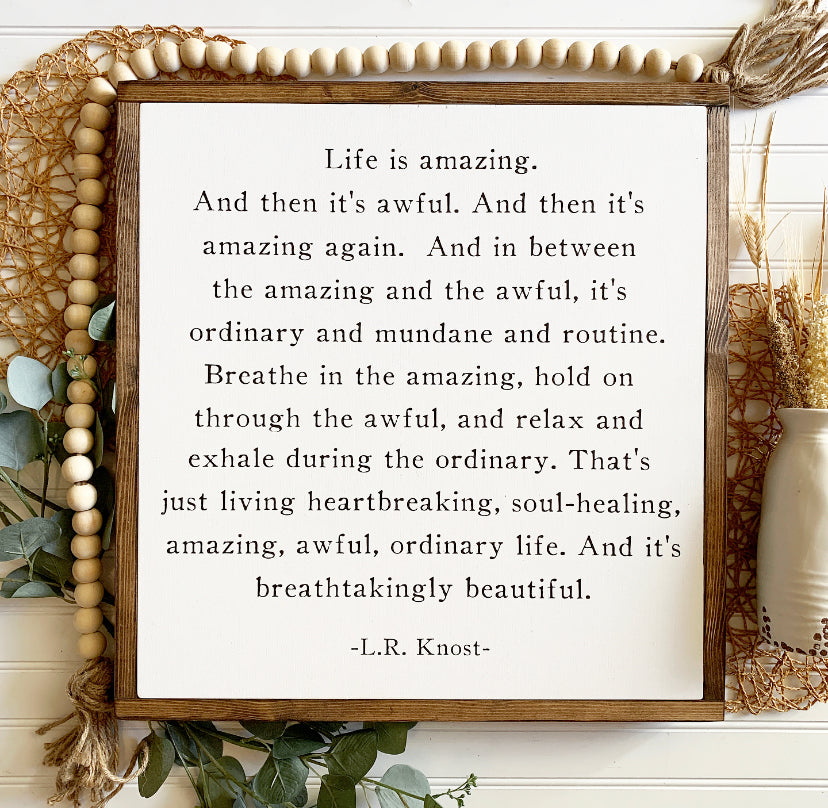 Life Is Amazing LR Knost Quote Framed Wood Sign