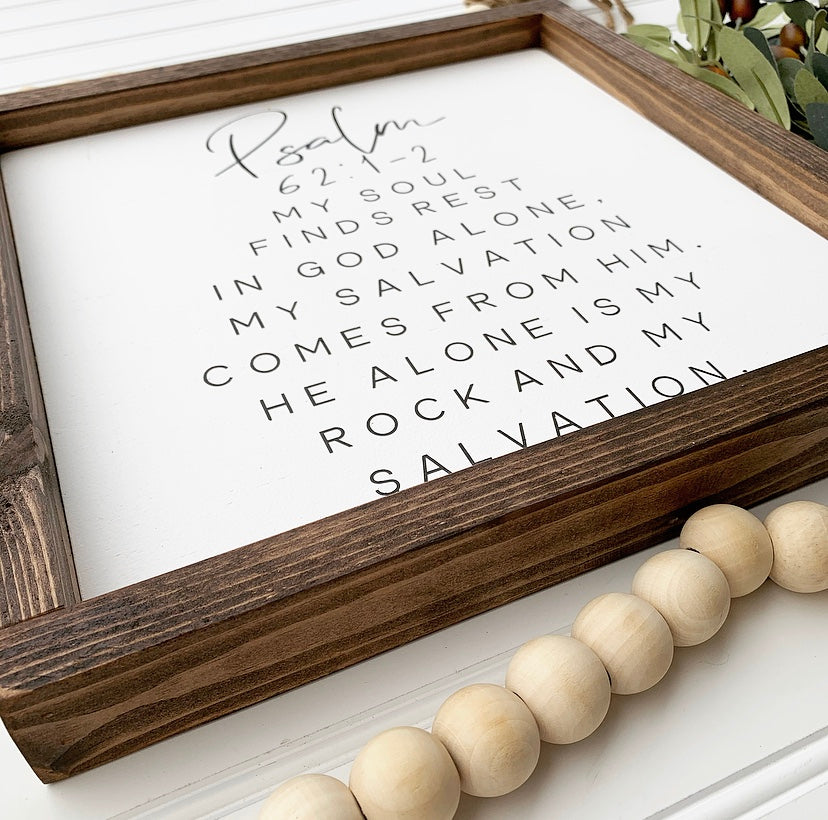 My Soul Finds Rest In God Alone, Psalm 62 Framed Wood Sign