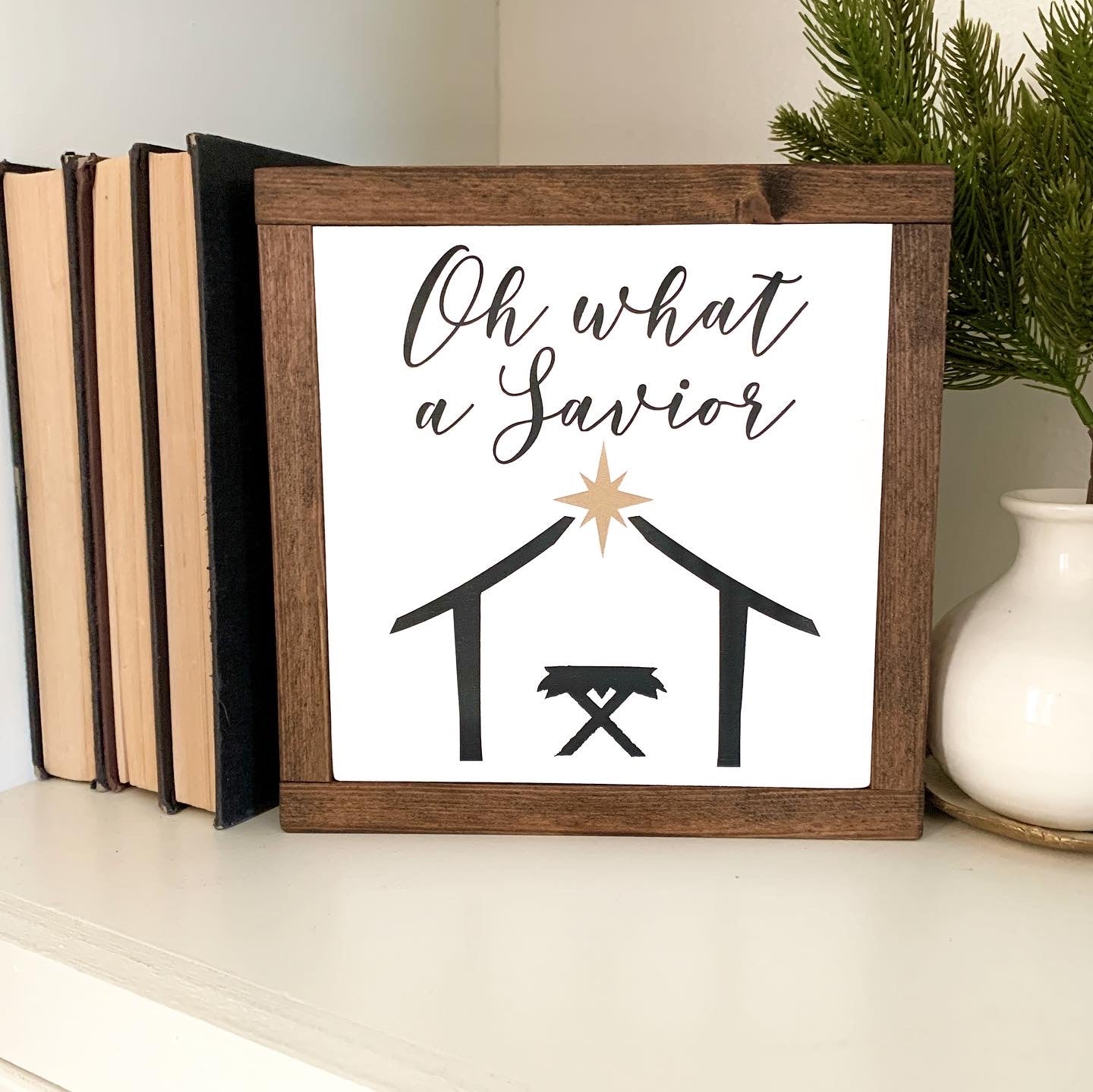 Oh What A Savior Nativity Framed Wood Sign