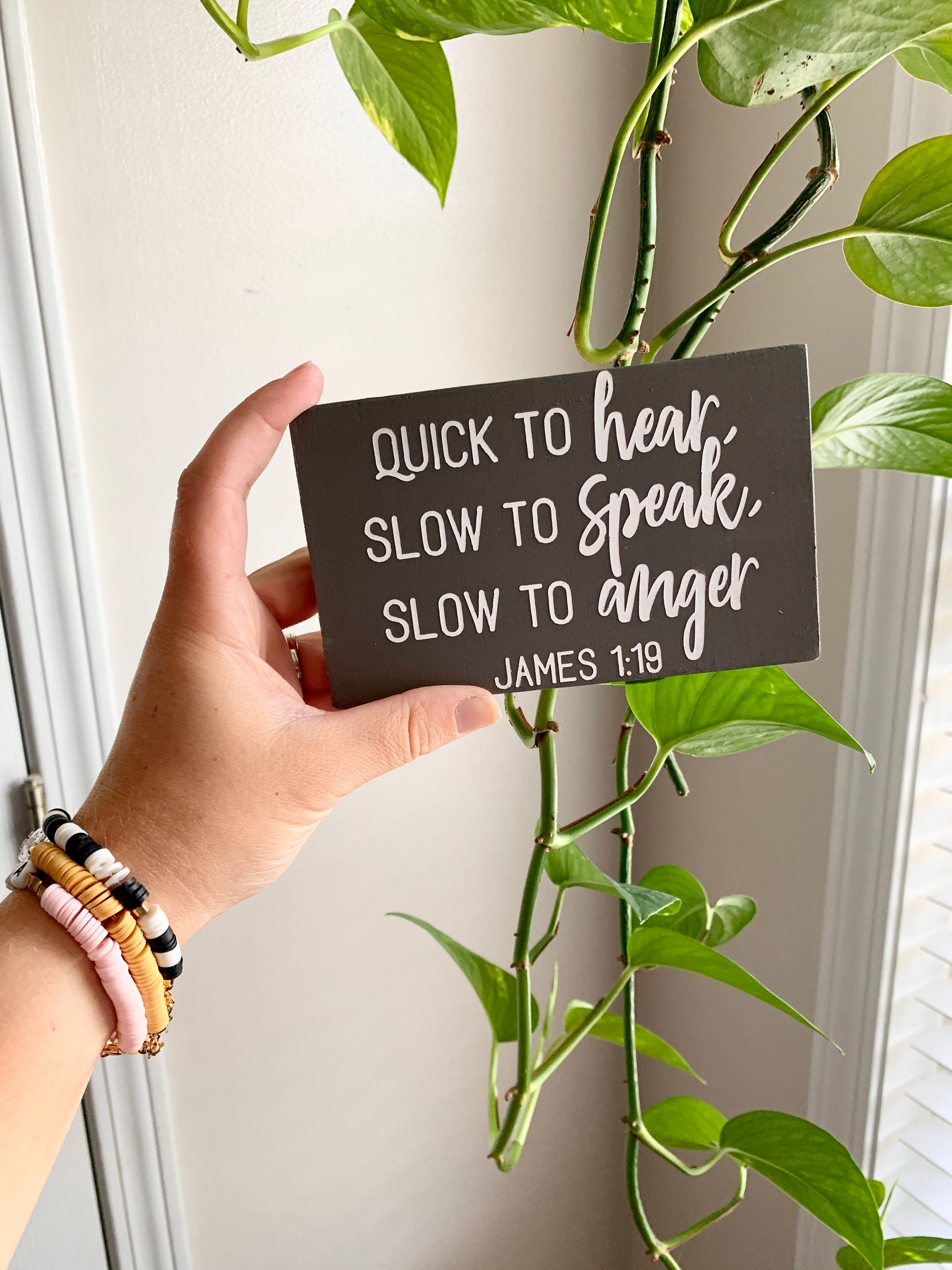 Quick to Hear, Slow to Speak, Slow to Anger James 1:19 Mini Wood Sign