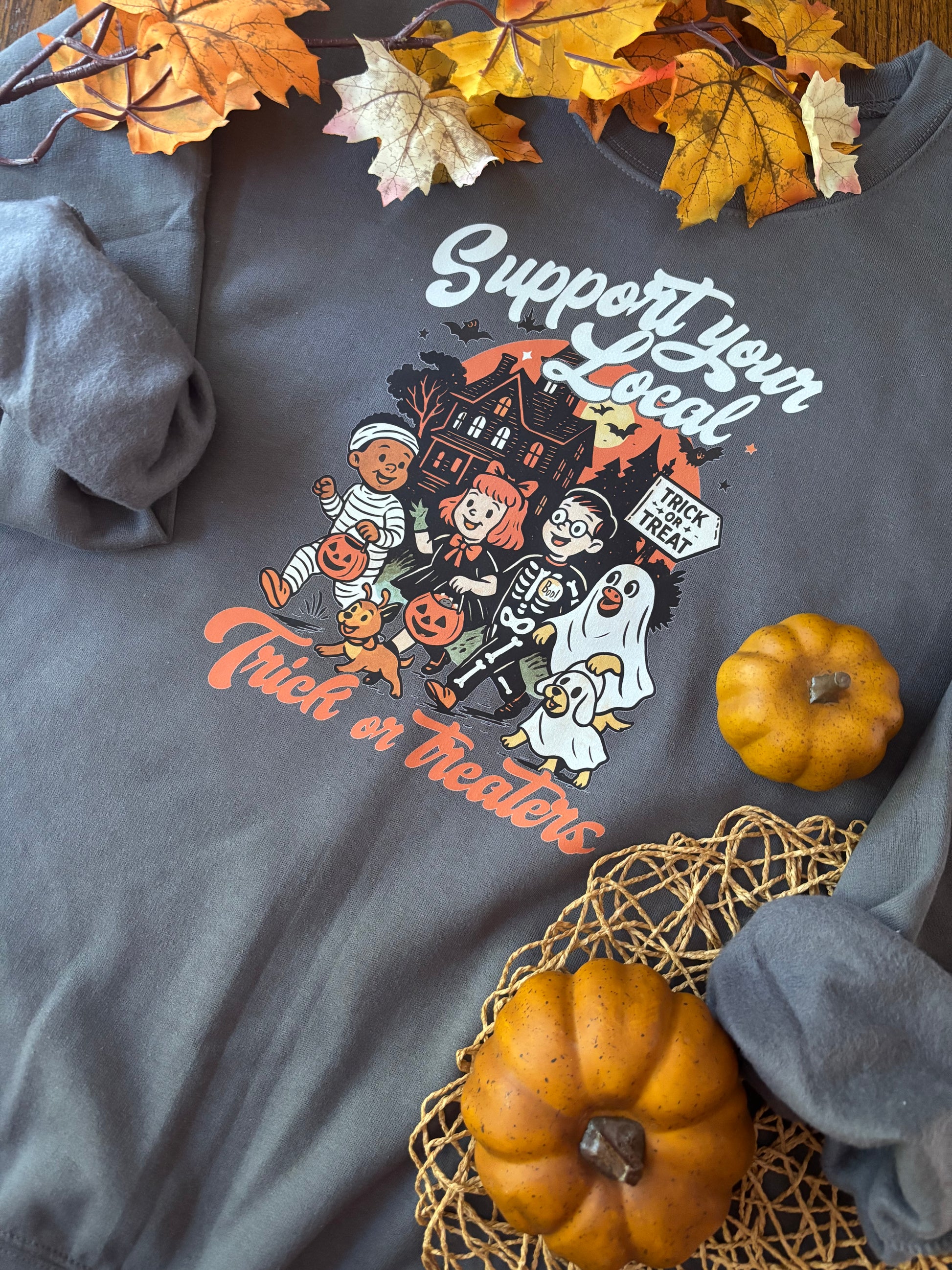 Support Local Trick Or Treaters Retro Halloween Crewneck Sweatshirt