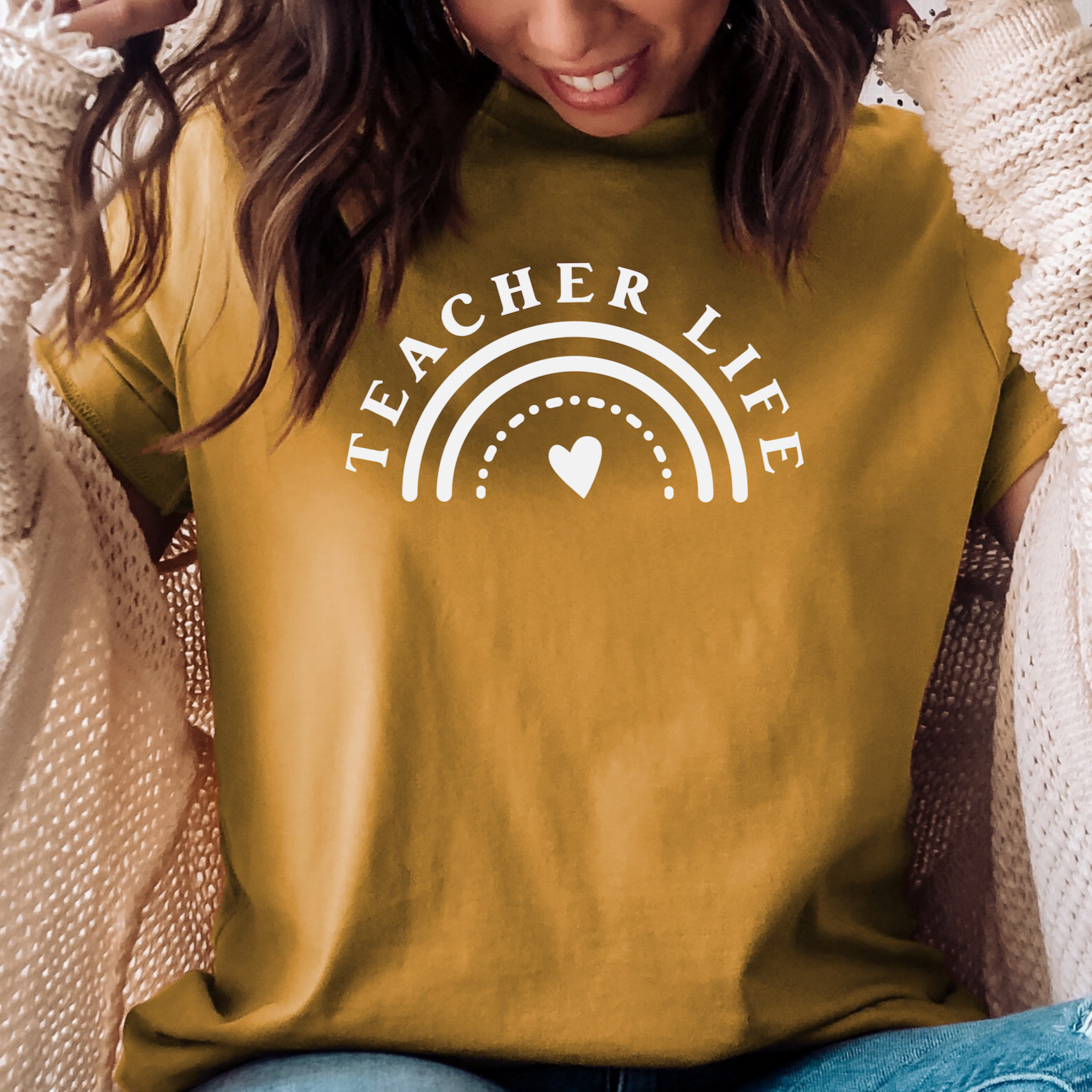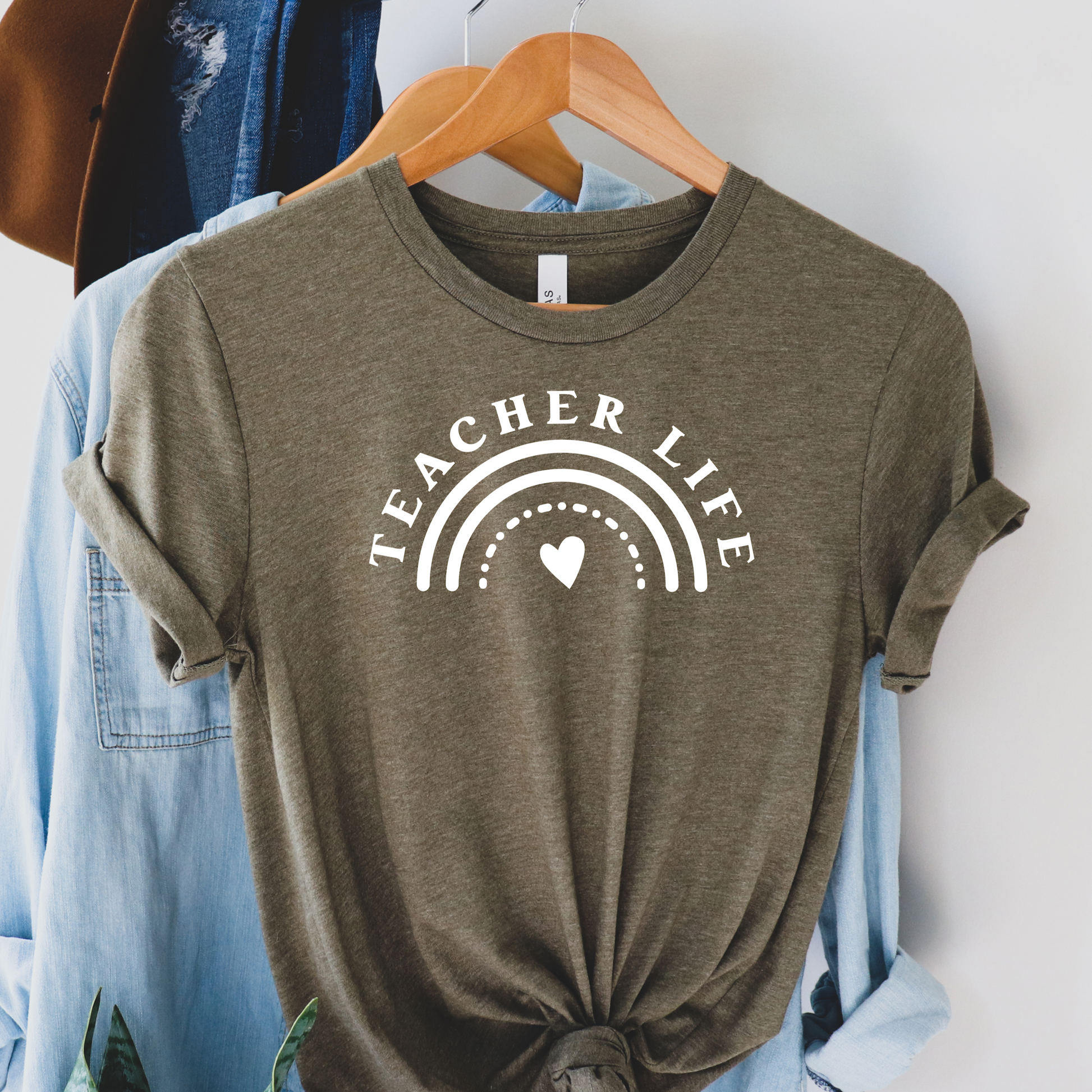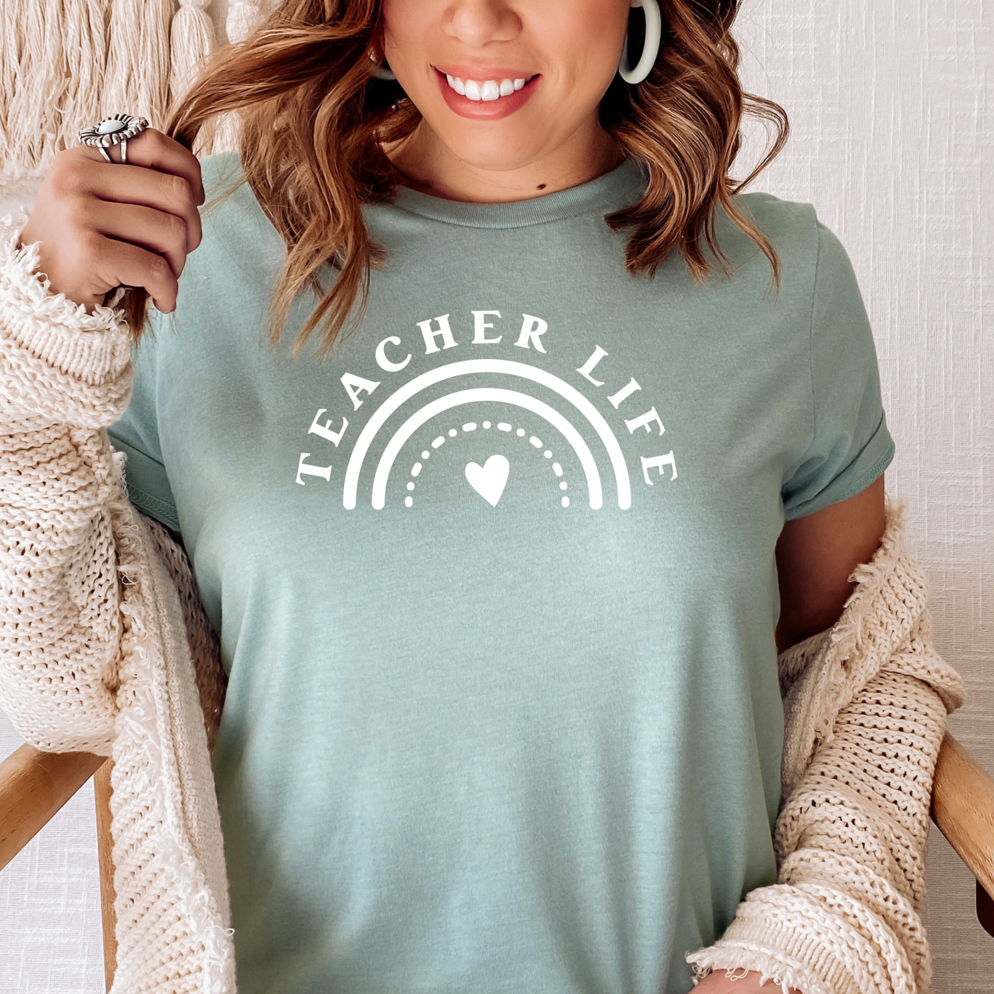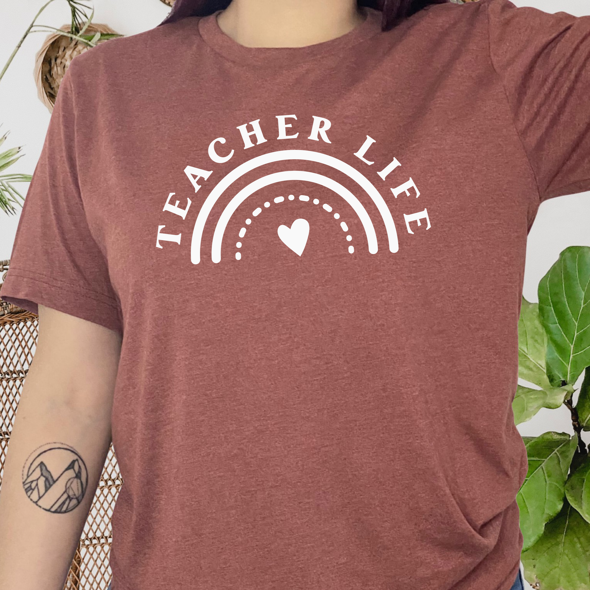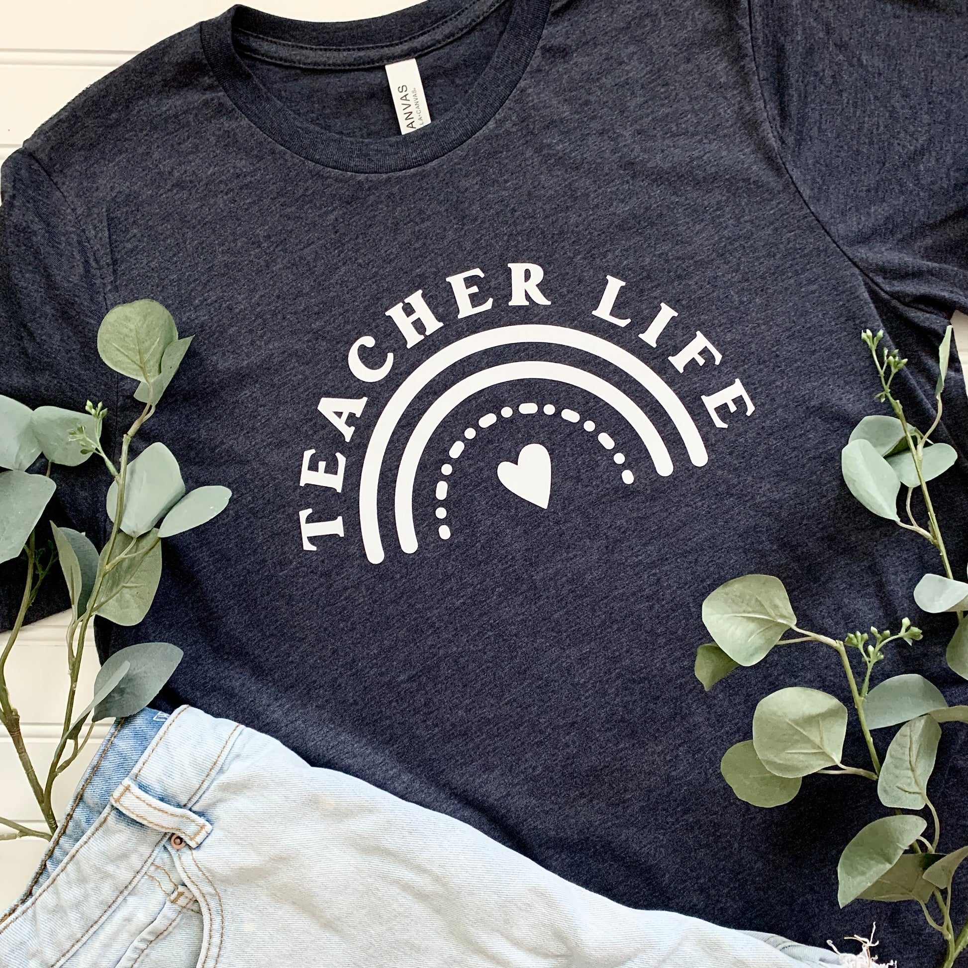 Teacher life includes having a cute tshirt to pair with a skirt, nice pants, or even jeans! Embracing the teacher life in the school days and beyond with this cute teacher graphic tee!