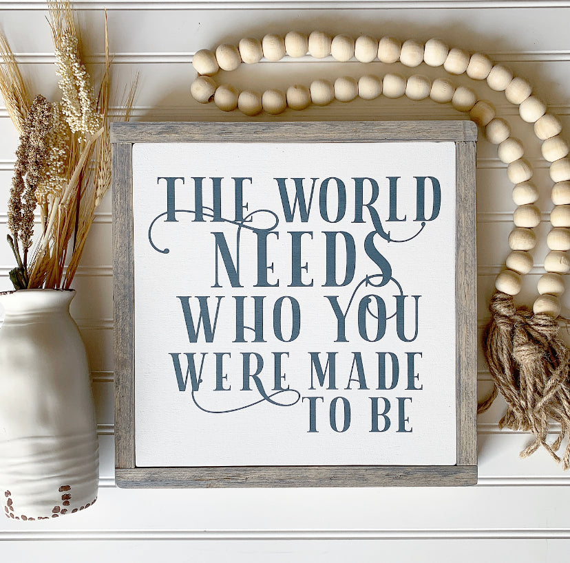 The World Needs Who You Were Made to Be Framed Wood Sign