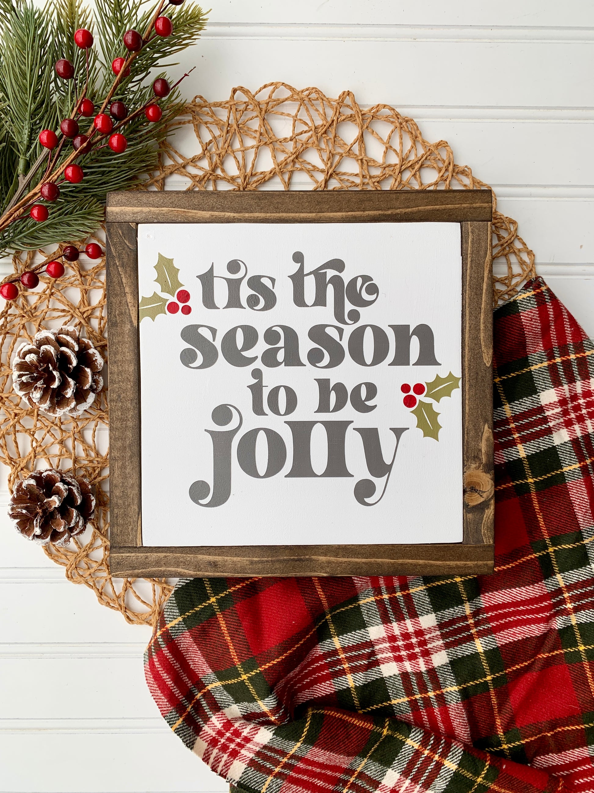 Tis the Season To Be Jolly Framed Wood Sign