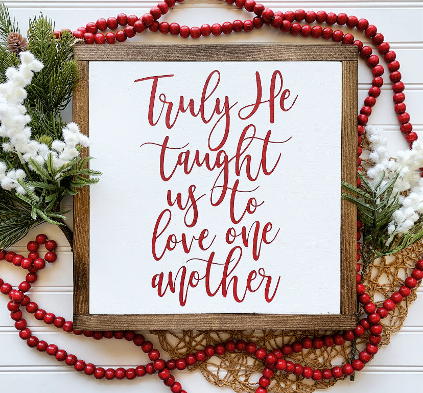 Truly He Taught Us To Love One Another Framed Wood Sign