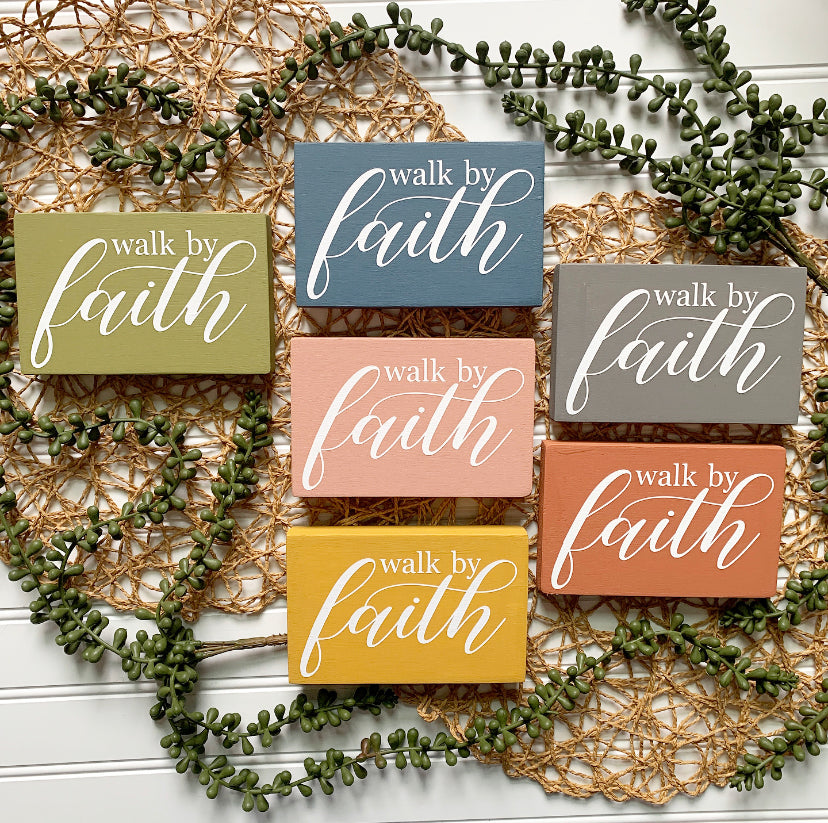 Walk By Faith Mini Wood Sign