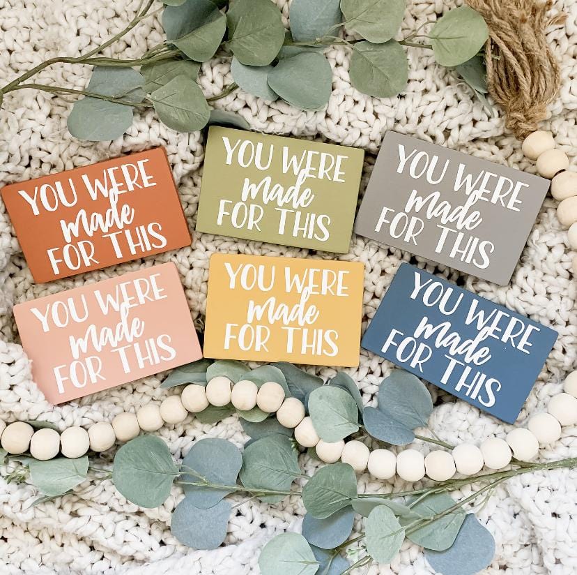 3.5"x5.5" - These are mini signs - perfect for a shelf or small counter or nightstand space. They do not come with hanging hardware, but can easily hung with a small command strip if desired.